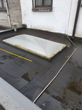 Ontmossen van de dakpannen en behandeld met beschermende coating + schilderen van de dakgoot (NA)